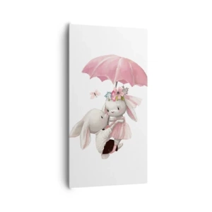 Cuadro sobre vidrio - Impresiones sobre Vidrio - Lindos conejitos bajo una sombrilla rosa - 80x120cm - Esto es amor - Decoración de pared moderna para salón y dormitorio ARTTOR