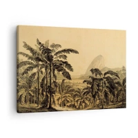 Cuadro sobre lienzo - Impresión de Imagen - Dibujo de árboles de plátano sobre un fondo de paisaje tropical. - 70x50cm - En un ambiente colonial - Decoración de pared moderna para salón y dormitorio ARTTOR
