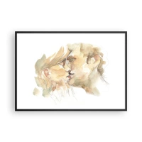 Póster en marco negro - Retrato romántico en acuarela de una pareja besándose. - 100x70cm - ¿La media naranja encontrada? - Decoración de pared moderna para salón y dormitorio ARTTOR