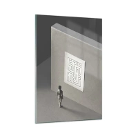 Cuadro sobre vidrio - Impresiones sobre Vidrio - Una figura en un laberinto mirando un mapa colgado. - 80x120cm - ¿Pero dónde estoy? - Decoración de pared moderna para salón y dormitorio ARTTOR
