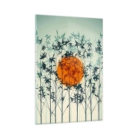 Cuadro sobre vidrio - Impresiones sobre Vidrio - Sol naranja entre las ramas de bambú. - 80x120cm - El sol de Japón - Decoración de pared moderna para salón y dormitorio ARTTOR
