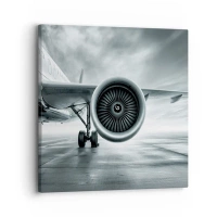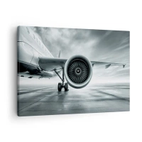 Cuadro sobre lienzo - Impresión de Imagen - El motor a reacción de un avión en la pista - 70x50cm - Hay poder - Decoración de pared moderna para salón y dormitorio ARTTOR