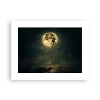 Póster - Hombre con la luna contra el cielo estrellado - 100x70cm - El que robó la luna - Decoración de pared moderna para salón y dormitorio ARTTOR