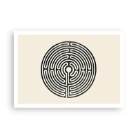 Póster - Laberinto circular en blanco y negro sobre un fondo claro - 100x70cm - Orden misterioso - Decoración de pared moderna para salón y dormitorio ARTTOR