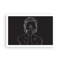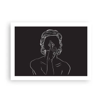 Póster - Silueta minimalista de una mujer sobre un fondo negro. - 100x70cm - La belleza florece en silencio - Decoración de pared moderna para salón y dormitorio ARTTOR
