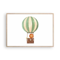 Póster en marco negro - Un globo con un león sonriente en una canasta de color pastel. - 100x70cm - Los viajes del león - Decoración de pared moderna para salón y dormitorio ARTTOR