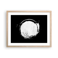 Póster en marco negro - Un círculo blanco sobre un fondo negro en estilo minimalista. - 100x70cm - La buena salida - Decoración de pared moderna para salón y dormitorio ARTTOR