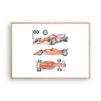Póster en marco negro - Un coche de carreras rojo con una bandera a cuadros. - 100x70cm - Para alcanzar un sueño - Decoración de pared moderna para salón y dormitorio ARTTOR