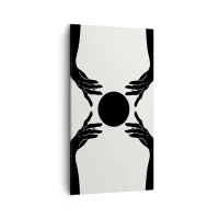 Cuadro sobre lienzo - Impresión de Imagen - Manos negras en una composición simétrica con una pelota. - 100x70cm - Una señal secreta - Decoración de pared moderna para salón y dormitorio ARTTOR