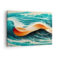Cuadro sobre lienzo - Impresión de Imagen - Olas marinas dinámicas con cinta abstracta - 70x50cm - El sueño de un surfista - Decoración de pared moderna para salón y dormitorio ARTTOR