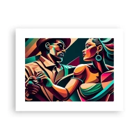 Póster - Una pareja estilizada bailando en colores vibrantes y geométricos. - 100x70cm - Al ritmo del corazón - Decoración de pared moderna para salón y dormitorio ARTTOR