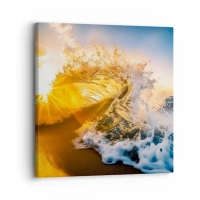 Cuadro sobre lienzo - Impresión de Imagen - Una ola dorada con el sol poniente como telón de fondo. - 50x70cm - Jugando en la arena - Decoración de pared moderna para salón y dormitorio ARTTOR