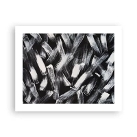 Póster - Abstracción dinámica con pinceladas blancas sobre fondo negro. - 100x70cm - Abstracción en el espíritu industrial - Decoración de pared moderna para salón y dormitorio ARTTOR
