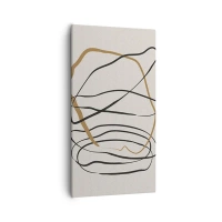 Cuadro sobre lienzo - Impresión de Imagen - Líneas artísticas en negro y dorado sobre un fondo claro. - 100x70cm - Composición: danza lineal - Decoración de pared moderna para salón y dormitorio ARTTOR