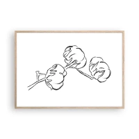 Póster en marco negro - Un delicado contorno de una rama de algodón sobre un fondo blanco. - 100x70cm - Plumón de algodón - Decoración de pared moderna para salón y dormitorio ARTTOR