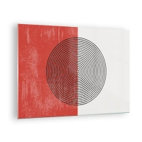 Cuadro sobre vidrio - Impresiones sobre Vidrio - Patrón geométrico con un círculo sobre un fondo rojo y blanco. - 70x50cm - En el corazón de la misma - Decoración de pared moderna para salón y dormitorio ARTTOR