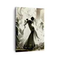 Cuadro sobre lienzo - Impresión de Imagen - Balón de estilo retro en blanco y negro. - 50x70cm - Gran mascarada - Decoración de pared moderna para salón y dormitorio ARTTOR